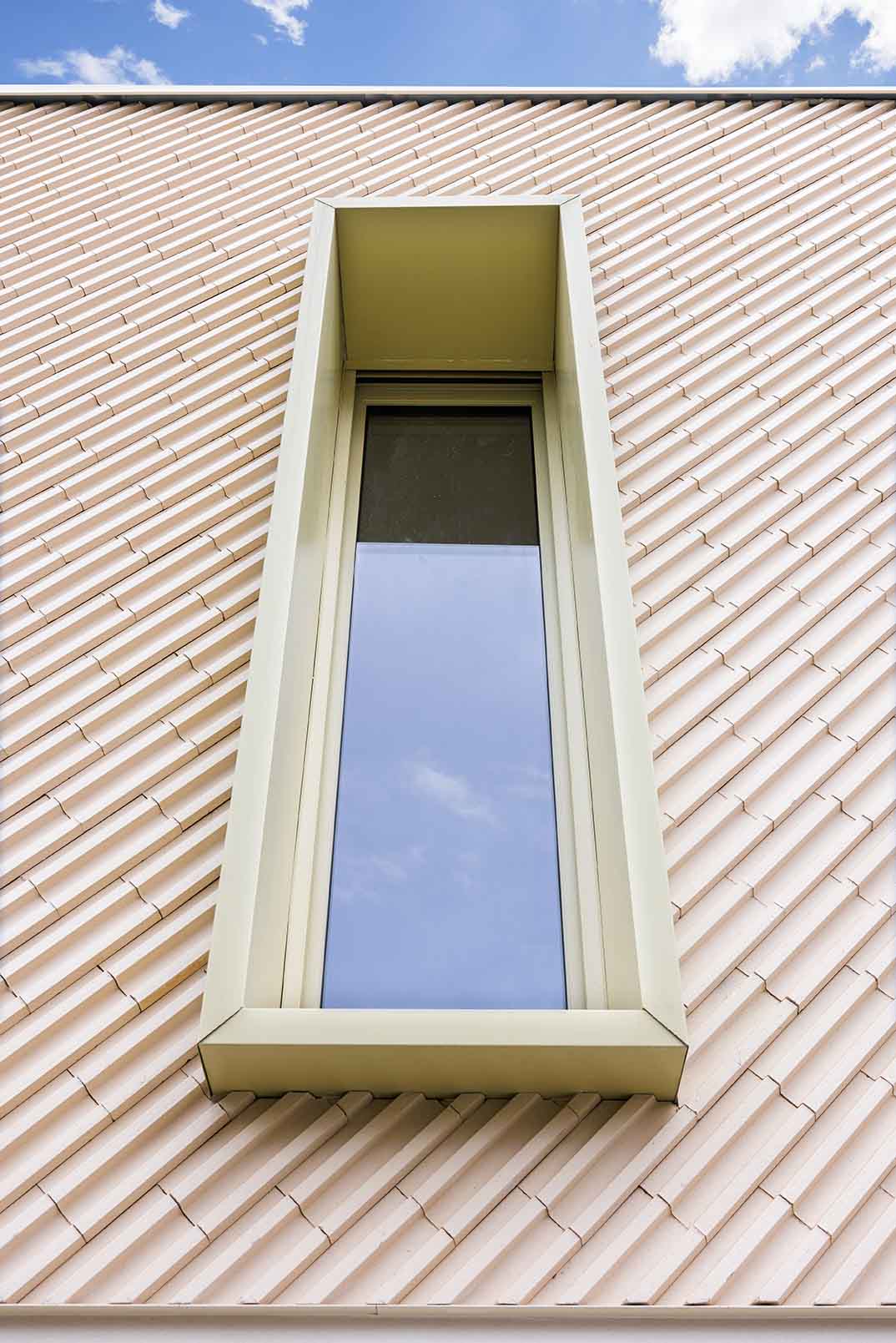 Aussi, la forme du profil Coste permet de jouer avec l’ombre et la lumière pour donner de la profondeur et la pose à 45° donne du dynamisme à l’étage contrastant avec le RDC beaucoup plus sage.